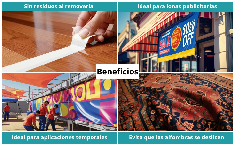 - Es ideal para fijar alfombras, tapetes, lonas y pósters.