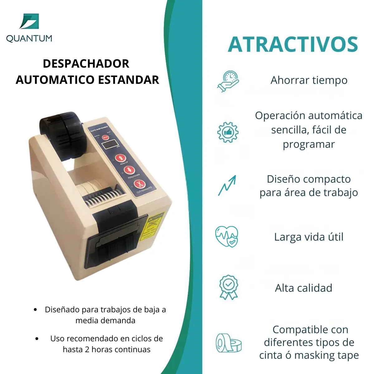- Compatible con diferentes tipos de cinta ó masking tape